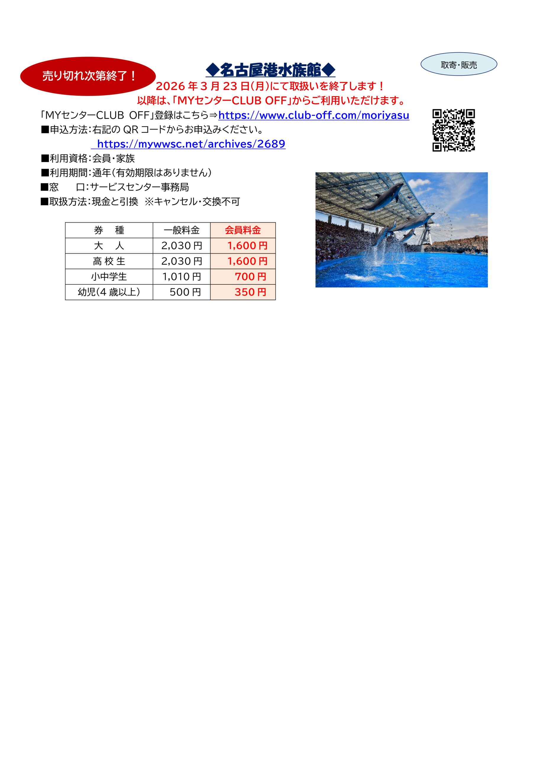 3/23取扱い終了!「名古屋港水族館」チケット斡旋販売!