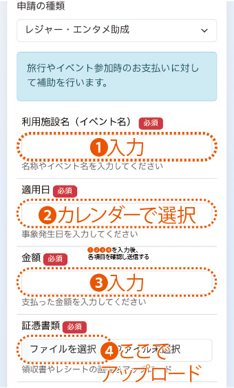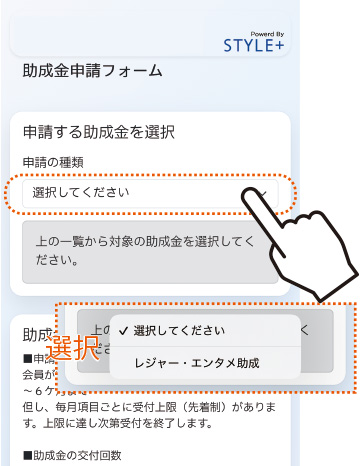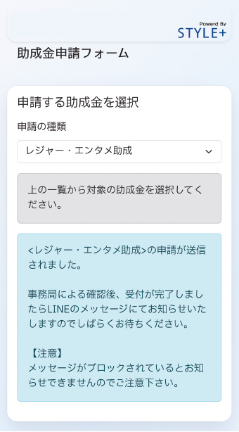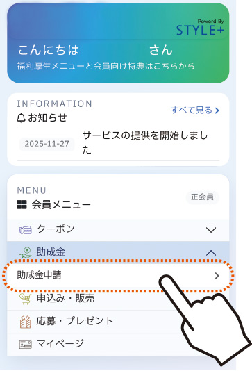 公式LINE「会員サービスメニュー」→「助成金」→「助成金申請」から申請してください。証明書は写真をアップロードするだけです。※紙では申請できません。
