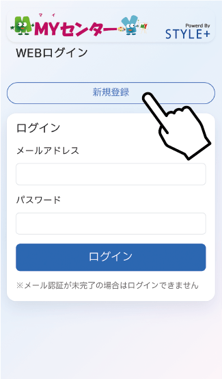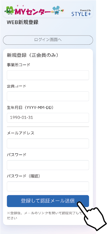会員番号の右側4ケタの数字「登録して認証メール送信」を押します