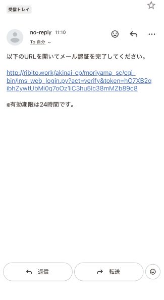 登録したメールアドレスに認証確認メールが届きます。(メールが届かない場合は、迷惑メールフォルダをご確認ください。)