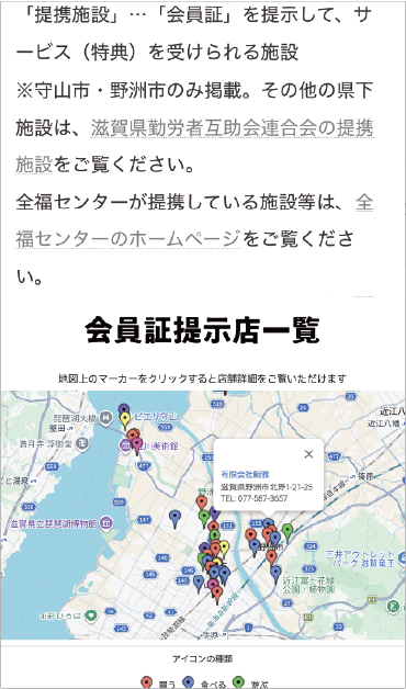 提携店舗マップは公式サイトの「優待・提携施設」をご覧ください。